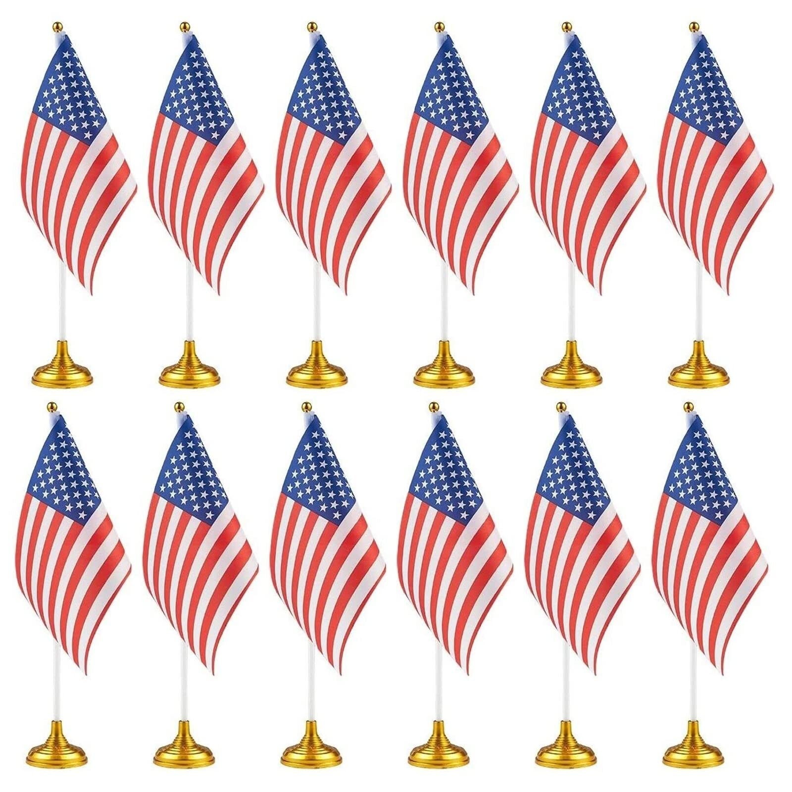 12-Pack Mini American Flags with Stand Base for Desk, Veterans, 4th of July, Memorial Day Small Miniature USA Desktop Centerpiece for Patriotic Home Office Table Party Decorations