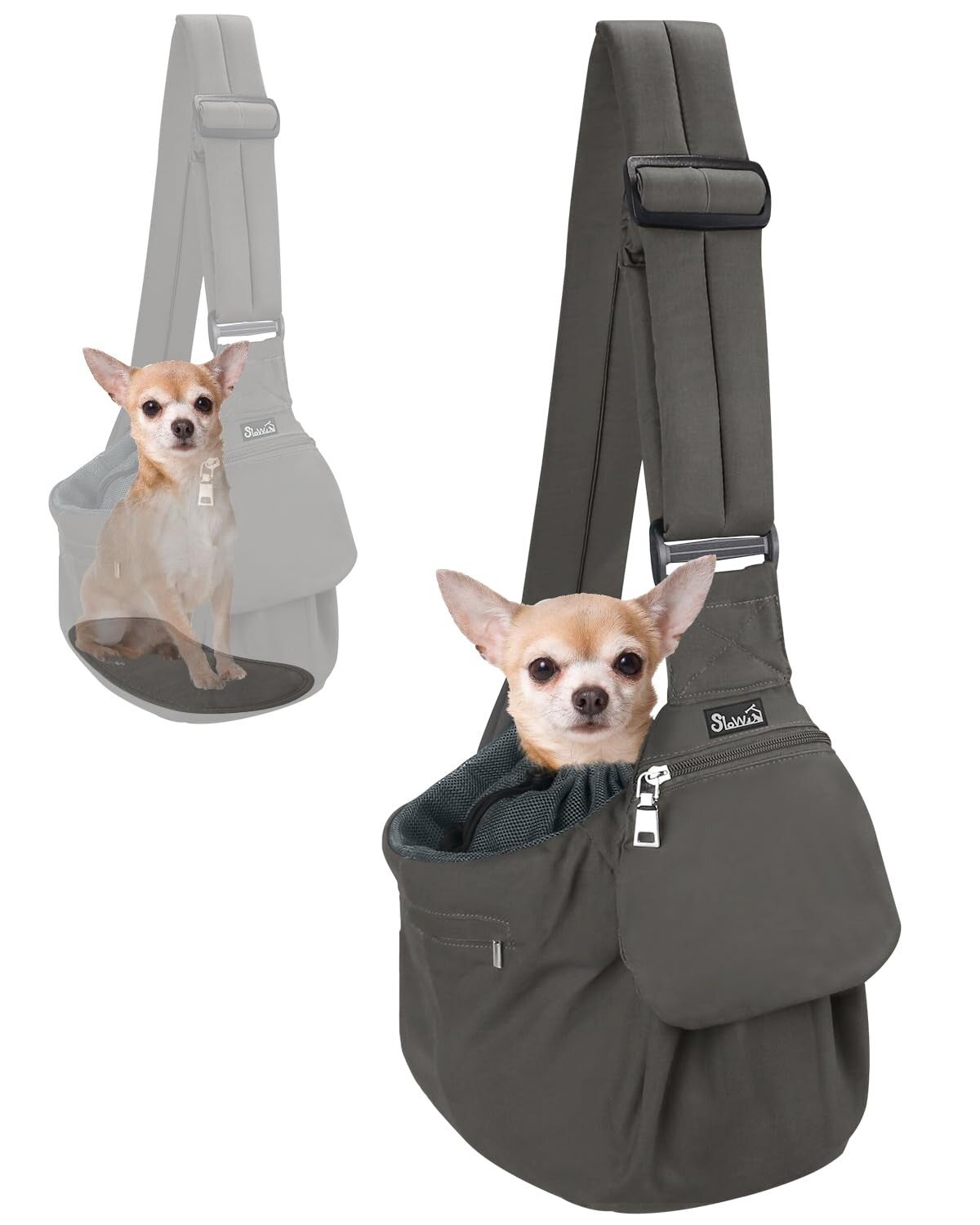 SlowTon Dog Carrier Sling - Hard Bottom Support Dog Carriers for Small Dogs with Adjustable Padded Shoudler Strap, Dog Purse